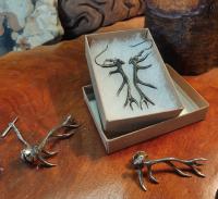 Offered here is a pair of elk antler sheds made sterling sil... |