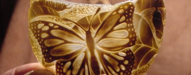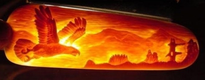 Here on this one I carved a wolf track with a pair of eagle ... |