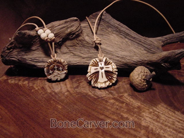 3 cross carved antler necklace