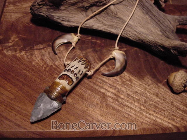 here is a beautiful carved eagle handle ona arrowhead neckl... |