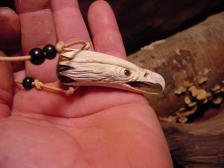 Here is a very beautiful carved antler screaming eagle made into a necklace, I in set a genuine turquoise cab on the end, Signed bonecarver and numbered