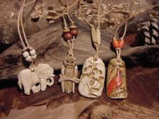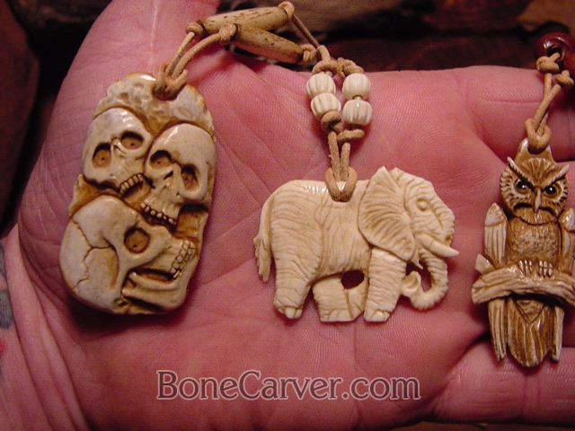 3 skull carved deer antler necklace