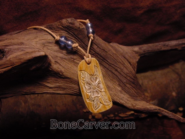 Dog wood flower carved antler necklace , strung