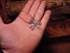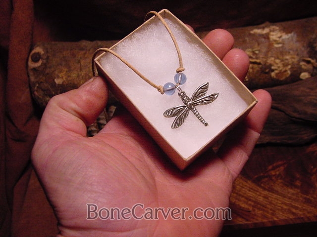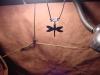 here is another very limited sterling silver design I did of a dragonfly, strung with silver jump ring brown leather cord and a few beads.. other color options are available