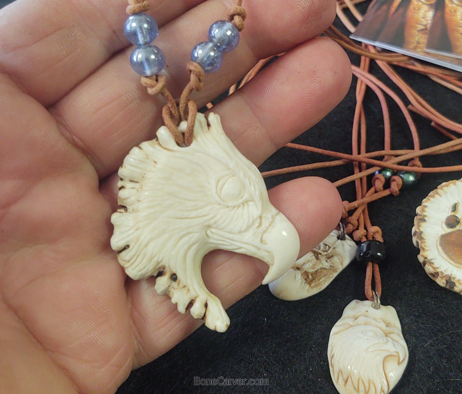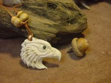 Eagle head carved antler necklace