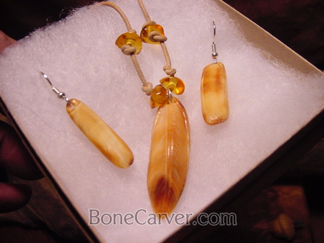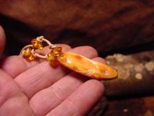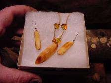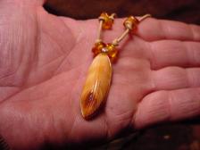 Fossil walrus tooth EAGLE FEATHERS with real Amber beads and sterling silver findings
