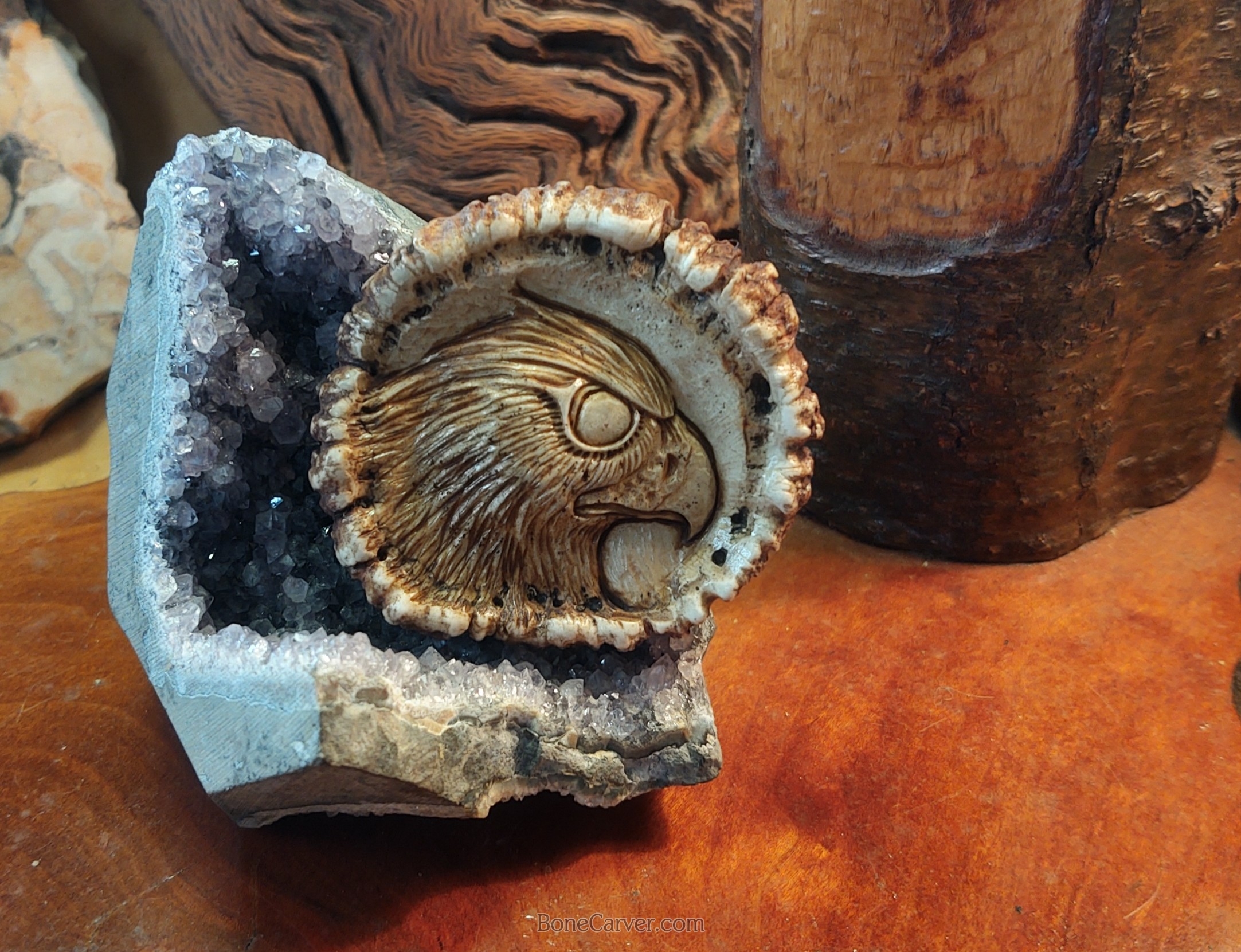RED TAIL HAWK carved elk antler crown belt buckle?