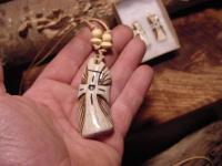 beautiful matched pair of carved antler CRoss earrings. , st... |