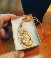 Dog wood flower carved antler necklace , strung with leather... |
