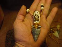 here is a beautiful carved eagle handle ona arrowhead neckl... |