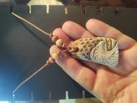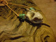 pretty cool carving of a snapping turtle skull strung up wit... |